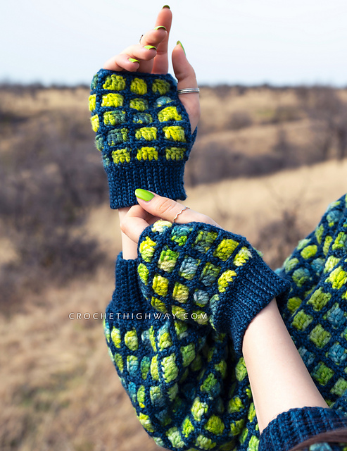 The interlocking grid pattern creates a refined, modern look, while the reversible fabric offers two distinct textures. They’re warm enough for chilly mornings yet leave your fingers free for everyday tasks—whether you’re crafting, commuting, or sipping a coffee on the go. They’re quick to make, endlessly giftable, and a perfect way to experiment with color combinations before tackling the [Gridlock Jumper][2].