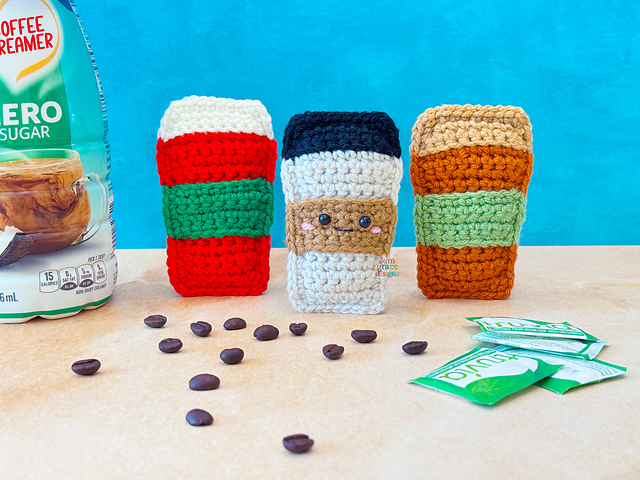 Our finished Tiny Coffee project is 4” x 2.5” using the recommended hook size. You are welcome to go up or down a hook size to create a different dimension. You can even hold two pieces of yarn together with a larger hook to create a giant cuddler. The sky is the limit!