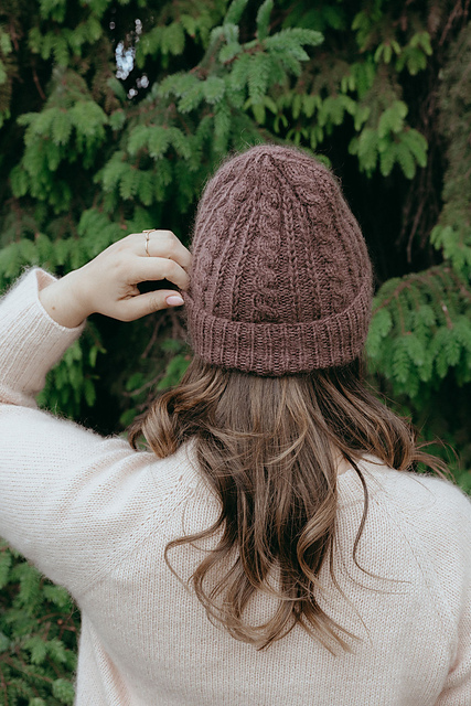 Le bonnet Spritz est un bonnet moelleux tricoté avec un fil de DK (ou deux fils de fingering) et deux fils de mohair.