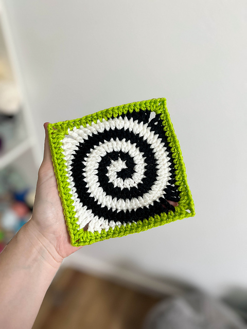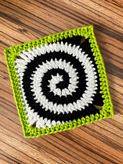 The Spooky Spiral Square pattern is geared for crocheters of all levels. It features slip stitches, single crochets, double crochets, treble crochets, and half double crochets. This is written in US terms.