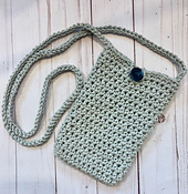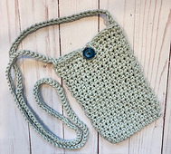 The Simple Phone Bag is made with the single crochet and half double crochet stitches. There is a loop fastener and a button to hold it closed. It is beginner friendly.