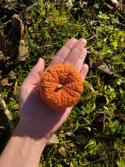 Recommended hook size: 3 mm. If you usually crochet very tightly or very loosely, you can use a larger or smaller hook to get a firm (but not stiff) fabric. The finished pumpkin should hold its shape when stuffed, but still feel soft and squishy.
