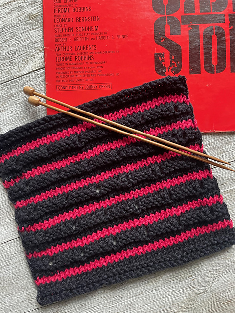 West Side Story Dishcloth is the June 2025 design for the Year of Dishcloths pattern club and is inspired by the movie soundtrack and the music of Leonard Bernstein.