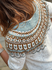 This pattern is made in 4 colors with the stranded knitting technique (3 colors per row), in the yoke a single chart containing the increases is followed. The geometric motifs decorating the yoke gradually increase in size. The result is a harmonious and balanced design.