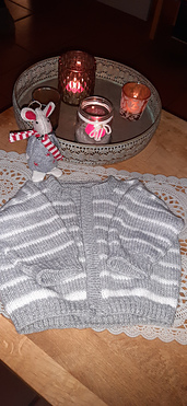This cardigan is knitted flat and from the bottom up in stockinette stitch.