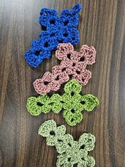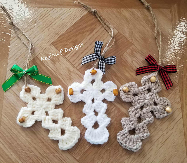 **Work this cute granny style cross up quickly with the scraps you have on hand and spruce up your tree or packages with a handmade addition this holiday season. Feel free to add any accents you like to make yours uniquely your own. Finished cross should measure between 4” & 5”, not counting the hanger, depending on your yarn choice & tension.**