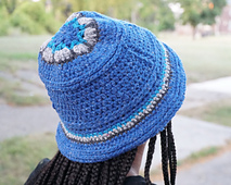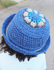 The hat starts from the crown, begins with an African Flower motif, then continues to the body and brim. Since a variety of stitches are used in this design, you won't be bored. Therefore, knowledge of single crochet, extended single crochet, half double and double crochet, half double crochet in the 3rd loop, a stitch that I coined "double half double crochet (or partial puff stitch), and increases and decreases is advisable. It uses one main color, and only about 30 yards each of contrasting colors. However the chunky yarn allows for it to work up fast, and you can make one for almost the entire family; have fun with it!