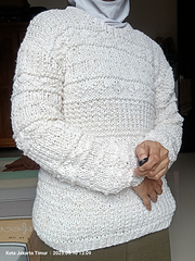 Sleeves end on a Diamonds (Diamonds, Diamonds, Diamonds)(Diamonds, 1/2 Broken Rib, 1/2 Broken Rib)(1/2 Broken Rib, 3/4 Broken Rib, 3/4 Broken Rib, full Broken Rib) texture panel, then 1.5 inches / 4 cm ribbed cuff