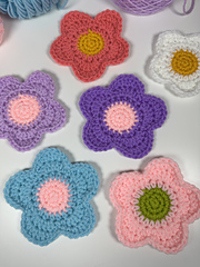 Easy Flower Coaster Pattern! Great for scrap yarn projects (which I often have too much of... can't seem to get rid of my mini balls of yarn)