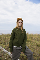 A circular yoke begins with a high ribbed neckline that flows into cables spreading across the shoulders like branches. Smaller cables fill the spaces between, enhancing the organic, nature-inspired look, and reappear on the hem rib and long cuffs. The fit is easy and comfortable, with roomy sleeves shaped by decreases into a gentle balloon silhouette. The long cuffs can be worn as they are or folded for versatility.