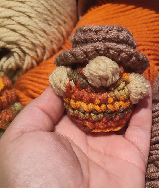 (Tension, hook and yarn size will determine size of your gnome. Keep tension tight enough for your yarn weight that stuffing will not peek through)