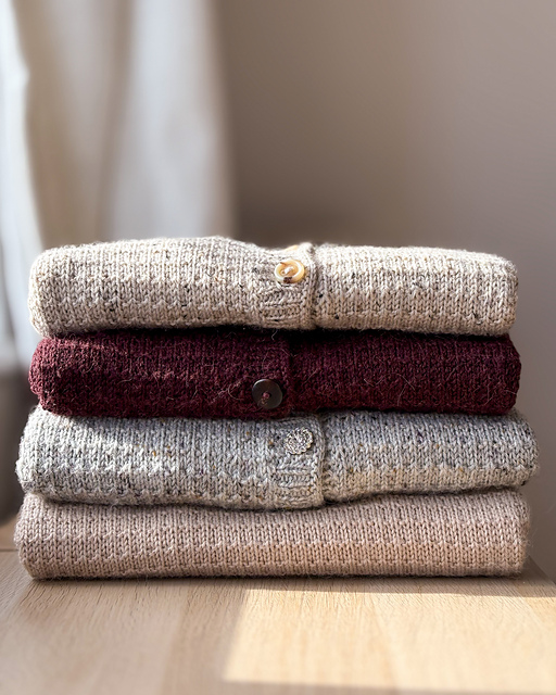 The body is then finished with a split hem, but there is also the option to omit the split. I next recommend that you apply the collar and the button bands, before picking up and knitting stitches to form the sleeves which are worked in the round. The collar, cuffs, and hem are finished with 1x1 rib. There is an additional pdf containing instructions on how to modify your Lucy Cardigan/Sweater to be a vest, if so desired.
