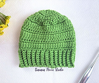 Canadia Hat was primarily designed as a chemo cap, but works equally well as a winter beanie. The lime green color of the original matches the support ribbon for those afflicted with lymphoma, a disease that a loved one of mine struggled against and overcame.