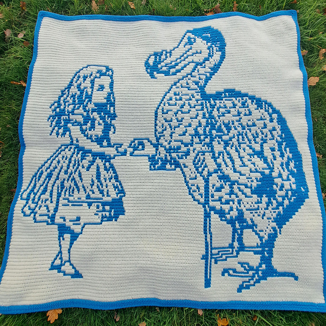 Lewis Carroll’s Alice in Wonderland is a iconic, well-loved classic piece of children’s literature illustrated with beautiful original line drawings by Sir John Tenniel. These illustrations are now in the public domain giving me the opportunity to bring these classics to light with the medium of yarn.