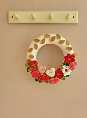Make a beautiful crochet Christmas wreath filled with colorful flowers, hearts, and shimmering gold leaves. This easy crochet wreath is perfect for festive home décor, front door displays, or as a unique handmade gift. A fun and creative project to brighten your holiday season.