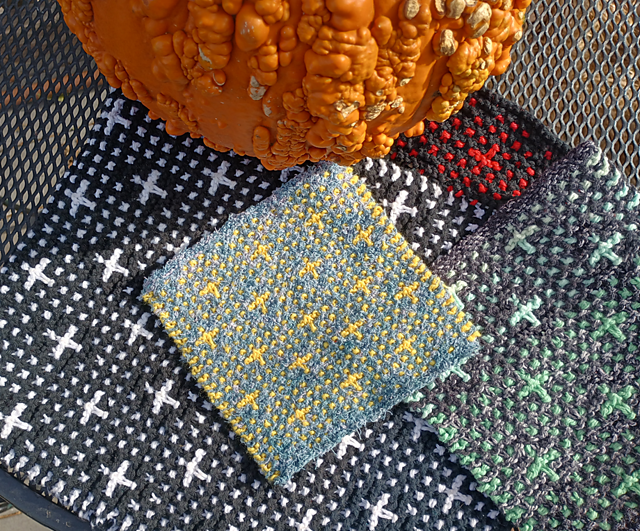 A fun, easy to memorize pattern that works well with just about all types of yarn; solids, variegated, stripes, scrubby (I especially love the scrubby). Pattern comes with instructions to make a worsted washcloth, towel, rug, and sport weight washcloth. Pattern is worked in Mosaic knitting, prior knowledge of this knitting method is required.
