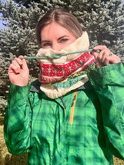 The Snowflake Sparkle Snood is the perfect project to knit for Christmas, offering both beauty and warmth in every stitch. Featuring a stunning snowflake colorwork design in Moonglow Yarn Co’s gorgeous DK Merry and Bright 7-color winter set, this cowl/hood (snood) is crafted to let the intricate colorwork shine, whether worn as a cozy hood or a classic cowl. The thoughtful bottom ribbing can be folded inside for double-layered warmth or pulled snugly over the face on chilly days. With its functional drawstring, you’ll stay extra warm and stylish throughout the holiday season. Give your loved ones a handmade gift they’ll cherish, or treat yourself to the magic of knitting something truly special this Christmas!