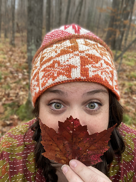 **Maple Moon Hat** is designed in appreciation for the Sugar Maple Tree. For some the maple tree symbolizes balance, marking the changing of seasons with maple sapping in the spring, and striking visual colorings in autumn.