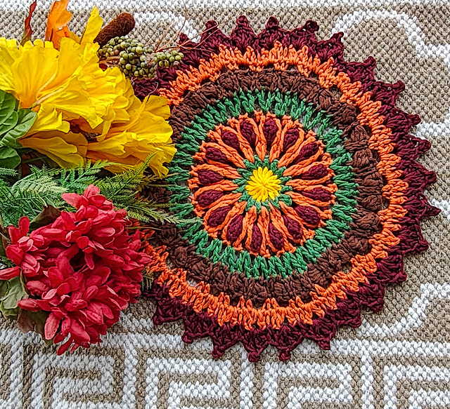 We wanted to use scrap cotton yarn that we have accumulated through the years and this mandala made use of that yarn so beautifully!