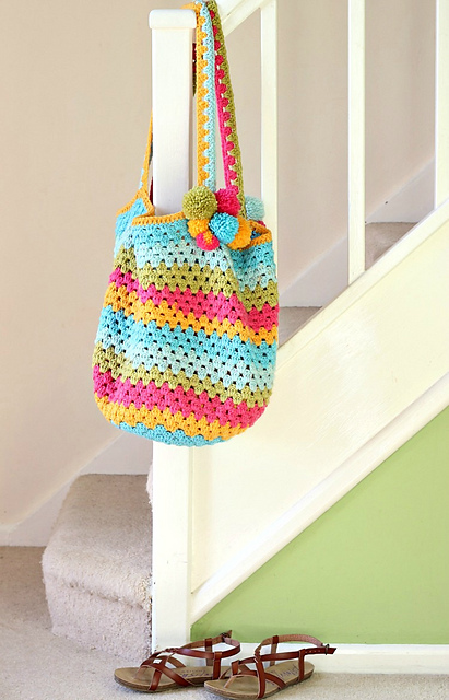 This is a generously sized bag but could made smaller by simply omitting the final increase (don't do rows 8&9). Or try it in dk yarn to make a more "normal" sized bag!!