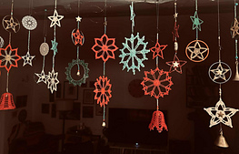 I want this to be a beginnerd friendly crochet along, so we start off with very simple little stars in week 1, week 2 we do larger flower pieces that are a bit more intricate and then we finish with the bells for week 3. All the different pieces we make during the crochet along can both work as hanging decorations or to be fitted up on fairy lights.