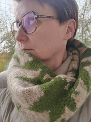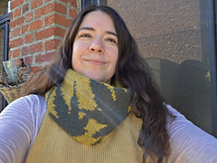 **Construction notes**: You knit the cowl in the round as a tube, starting with a provisional cast-on. Follow the colorwork chart until all rows are complete. Then, undo the provisional cast-on and graft the live stitches to the cast-on stitches. You can optionally add a mobius twist before grafting.