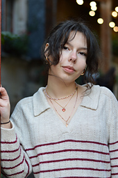 **Yara Sweater** is worked from the top down. The yoke is worked with raglan increases, first back and forth to the create the V-neck, then in the round on the circular needles. The body and the sleeves are worked in the round.