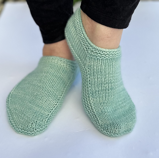 The Waterway Slippers are knit in one piece with no seaming or grafting required, just two ends to weave in on completion. Knit from the sole up starting at the heel with short rows incorporated throughout to shape the slipper for comfort and fit.