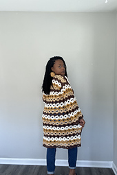 The Lenora cardigan has 3 sizes that fit all XS-4XL+, so it is size inclusive. Part of the pattern like desired length and sleeves are made to measure, this means it can be customized to your desired fit.