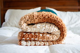 Introducing the Toasted Marshmallow Throw, a cozy and textured blanket designed for warmth, speed and effortless beauty. Made with soft. chunky yarn, this throw features stunning warm tones that seamlessly phase and pool together, creating a mesmerizing blend of contrast and fade. The Block Stitch adds just the right amount of texture and with one simple hack, there is absolutely no cutting, knotting or fastening off at the end of each row, allowing you to glide through this pattern with ease. This blanket works up incredibly fast and is an excellent weekend project. Perfect for customizing colors and shades, this pattern is sure to become a staple in your collection. Enjoy!