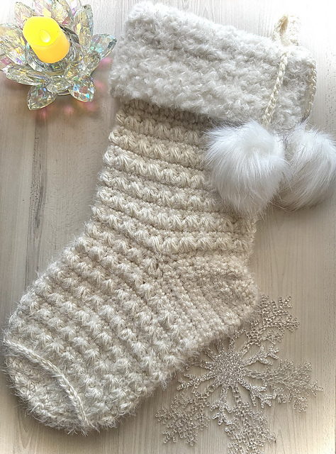 The Petoskey pattern line just got a whole lot more festive! Say hello to the Petoskey Stocking! This beautifully textured stocking works up fast using bulky yarn or double stranded worsted. It's a generous size too, allowing you to stuff it full of goodies! Finished size will vary, depending on your yarn choice, but average size is 7" wide X 18" long. The pattern includes a BONUS mini stocking pattern, perfect for putting gift cards in or for using as an ornament.