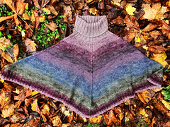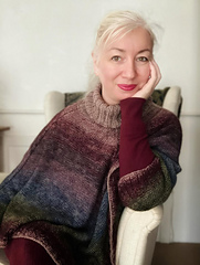 The Coorie In For Advent Poncho is knitted from the top down holding two strands of fingering weight yarn, beginning with the cowl neck. Short rows are added to shape the back of the neck, before continuing to work the body in stocking stitch placing raglan increases at front, back and sides.