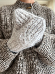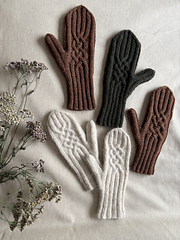 Depending on the yarn you choose the Space between mittens can be elegant for the city life or robust for playing outside in the winter. The whole mitten is worked in rib pattern with a beautiful cable motive on the back of the hand.