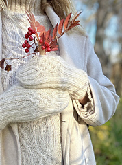 Intermediate. The mittens are not suitable for beginners. Complex cables are made and you need to know how to decrease and increase. For some parts of the pattern there are only charted instructions, not written.