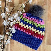 The Eveline Granny Stripe Hat is a colorful celebration of hope and comfort, designed for the 2025 Crochet Cancer Challenge. This easy, bottom-up pattern features soft, breathable granny stripes and a cozy fold-up ribbed brim—no sewing required!