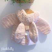 This crochet pattern is for a baby coat that can be made in 7 sizes, from newborn up to 24 months. The baby coat is made with bulky yarn making the cardigan chunky and warm, perfect as a winter jacket. With bunny ears on the hood and basic waist shaping, the baby coat looks adorable on baby girls. Also, the crochet baby coat is simply made with minimal sewing, you will need to sew some basic shaping, plus the bunny ears, tail, and buttons.
