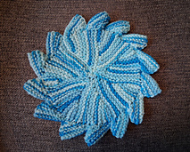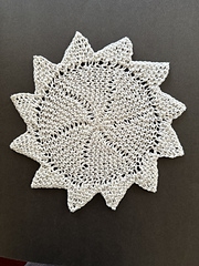 This pattern is worked in short row wedges with a garter stitch center and open 'whale teeth' circling the edge