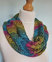 This crochet cowl pattern is a great way to use up mini skeins from your stash or any small amounts of sock or fingering weight yarn.