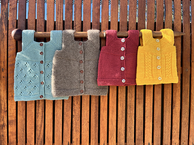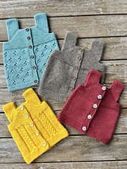The shoulder straps are created by casting off stitches. The body is then knit flat with an integrated button band worked at the same time. Finishing details included to ensure the button band doesn't flip inwards.