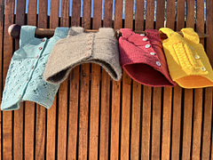 Samples shown in a variety of yarns. When substituting, the pattern is very forgiving but a wool-based yarn is recommended to provide some elasticity and memory through the yoke section.