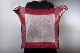 The sample Skwaer is worked in ITO Sensai in 311 Enji as Border Colour and 300 Pale Blush as Center Colour. Other combinations of colours or yarns work fine as well, as long as both yarns have the same gauge.