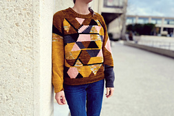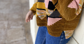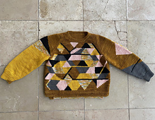 Le Radieux is my intarsia homage to Le Corbusier’s Cité Radieuse: architectural geometry and the shafts of light it creates dissolved into stitches; modernism rendered in wool!