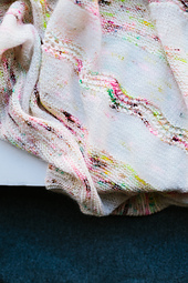 *Starting at a single point and growing and shifting from ethereal mohair to silky smooth single ply into a piece that begs to be wrapped up in.*