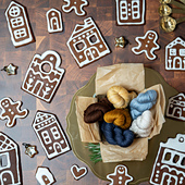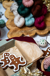 *When you purchase this pattern, you will receive the GETTING READY GUIDE.* You will not receive the pattern clues until December 1st. The 12 clues, & Supplemental Photo Tutorials will be delivered daily from December 1st through the 12th. Check out the kits available from [Miss Babs](https://www.missbabs.com/collections/gingerbread-cowl-sets) OR from the [list of dyers](https://www.tellybeanknits.com/gingerbread-mkal-list-of-dyers) who have created something special for the MKAL. This project is also great for stash busting and using up leftovers!