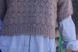 Notes are included on how to modify fit in a number of ways, and stockinette panels at sides and shoulders make for easy tweaks. Lace instructions are both charted and written.