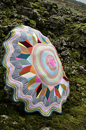 *Gather a collection of DK weight yarns to knit this blanket inspired by the colorful houses of Reykjavik. The blanket begins with the color block parallelogram shapes and short row triangles.