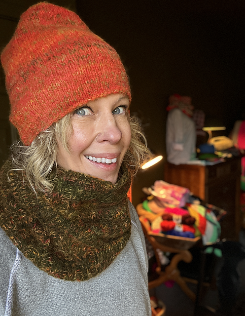 Luscious fabric, easy knitting, instant styling...what's not to like? We're smitten with this hat and cowl that use familiar stitch patterns in an offbeat way. And oh, the marling possibilities!