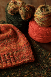 **Hat:** Approx. 160 yds / 146 m (195 yds / 178 m) of a worsted-weight yarn, or each of yarns to hold together to create fabric in stated gauge.