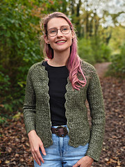 The cardigan has a raglan yoke with a V-shaped neckline, creating a comfortable fit around the neck. A stitch count chart is provided to help you keep track of your stitch placement. The length of the cardigan and it’s sleeves can be adjusted to your liking. This is an intermediate level (3/5) pattern