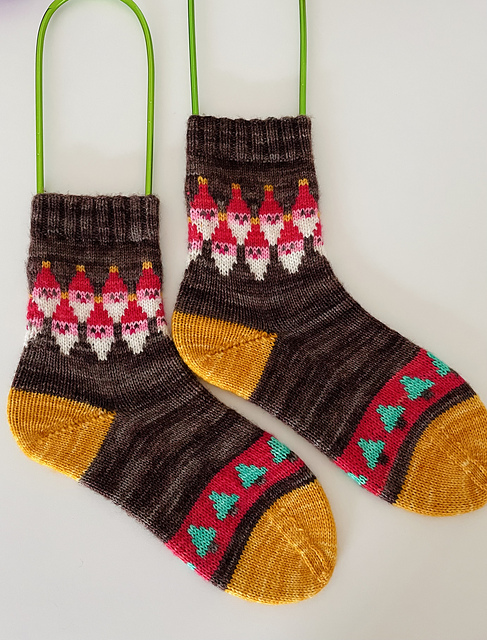 The full Secret Santa Socks pattern features a different, more detailed and complex design, along with complete step-by-step instructions.
